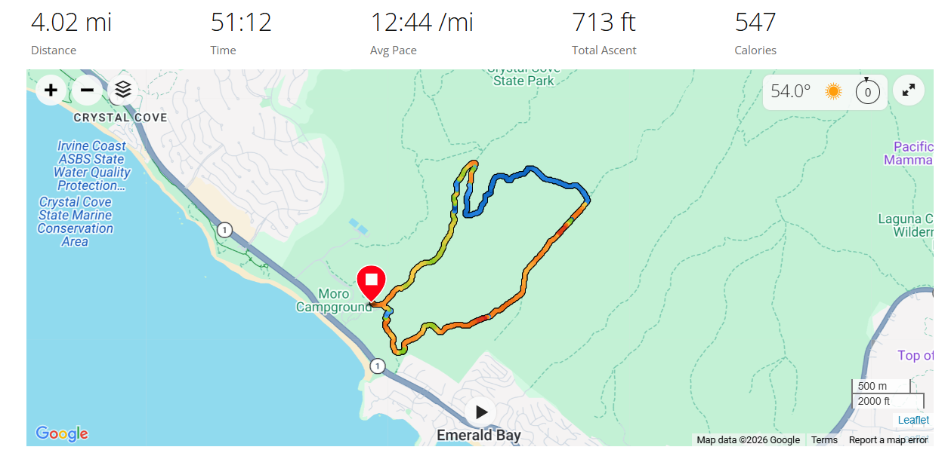 - Descend BFI and turn left on Moro Canyon to the start/finish turn around.